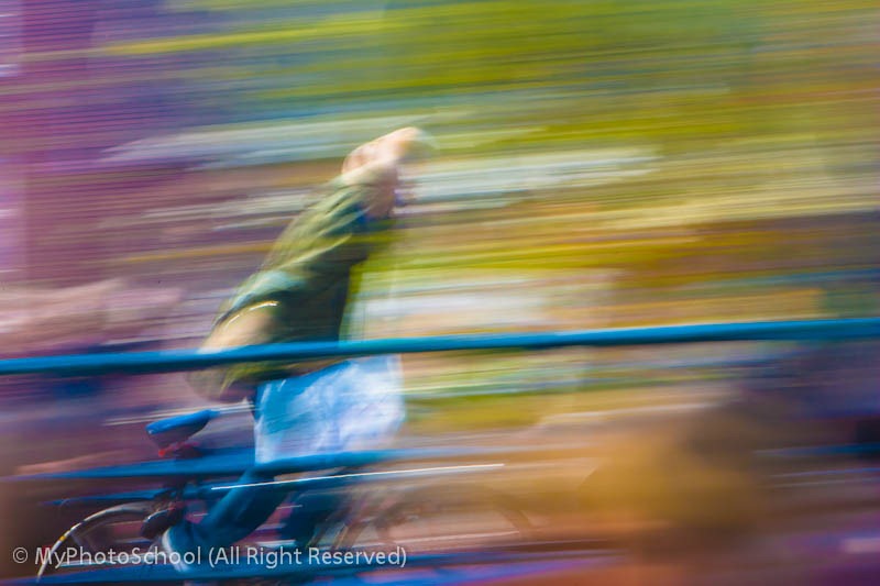 Sometimes we may combine both subject and camera movement, by panning on a moving subject, such as a bird in flight, or a speeding cyclist.